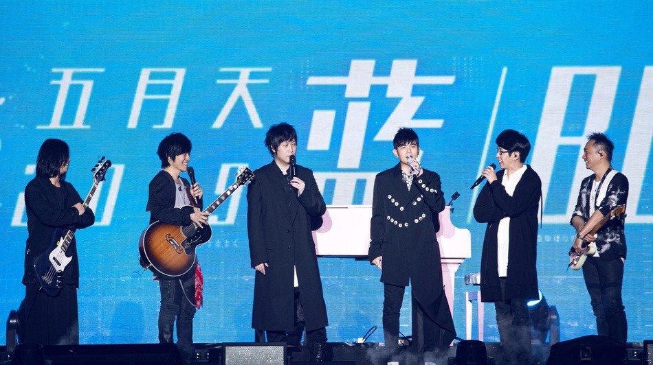 五月天周杰伦合影。