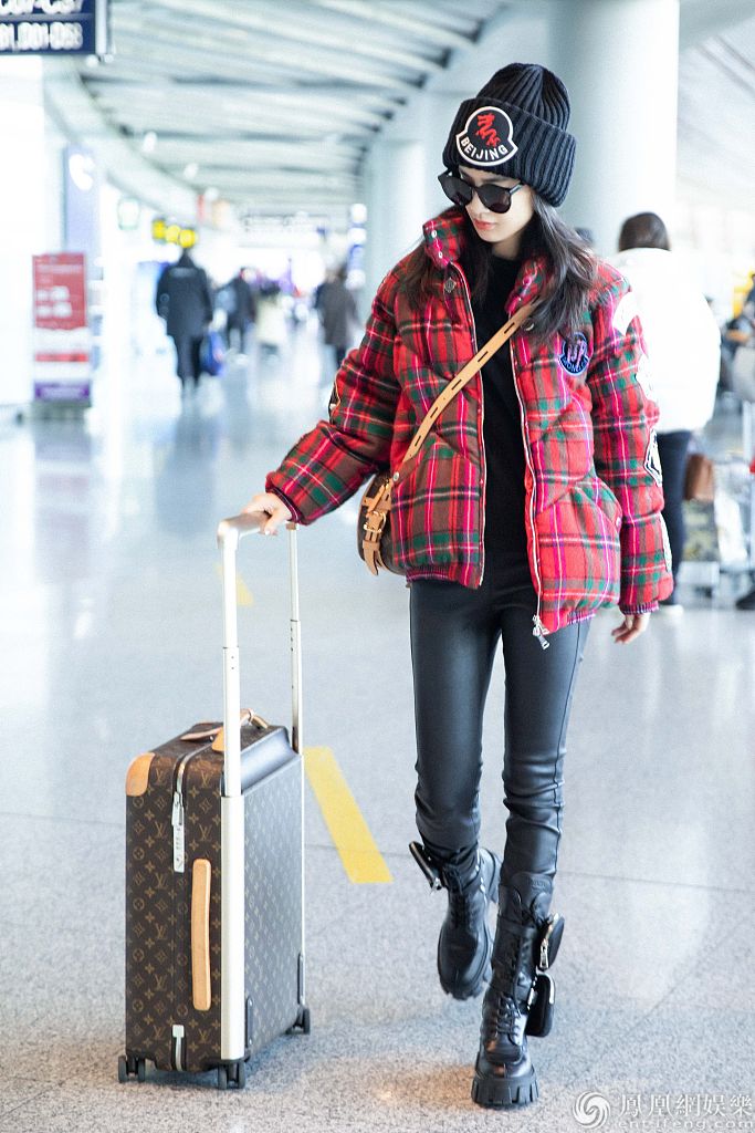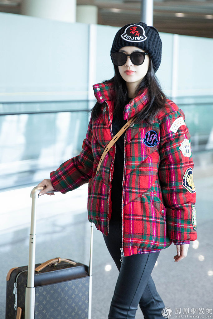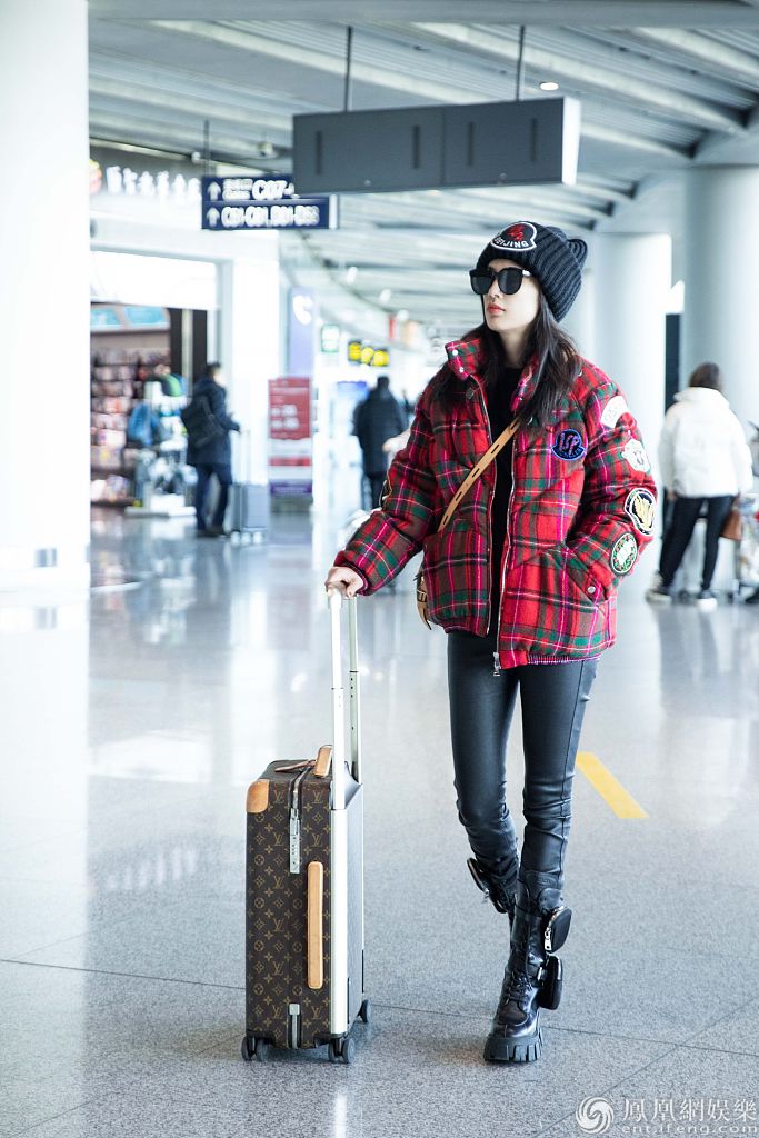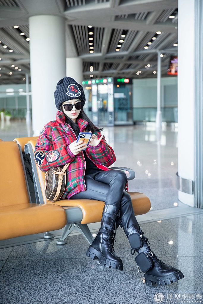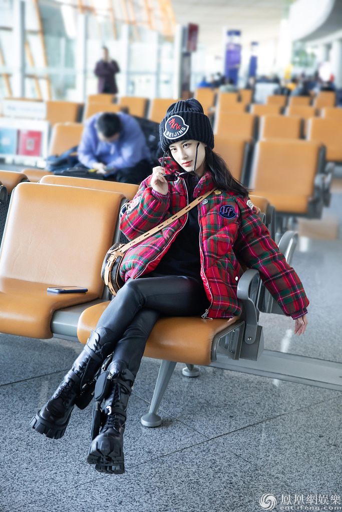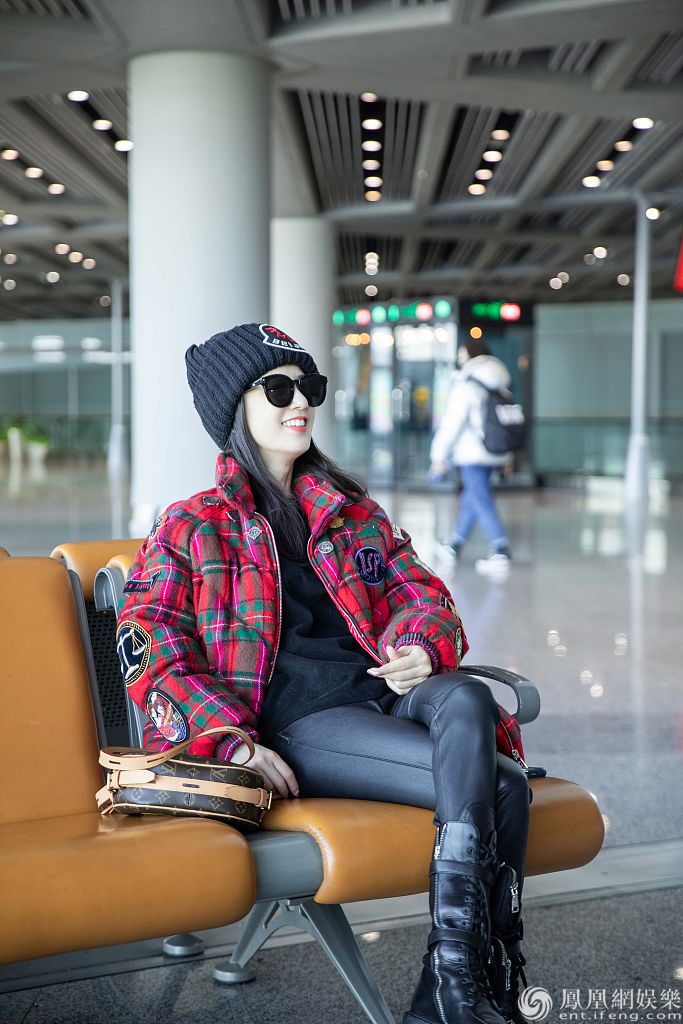2020年1月10日讯,北京,黄圣依近日现身机场。她上身穿一件红色苏格兰风短棉袄,搭配紧身黑皮裤,登一双时尚马丁靴,帅酷又青春,展现令人羡慕的“漫画腿”。当天,黄圣依心情大好,在候机时不时看手机,露出灿烂笑容,面对记者的镜头也大方配
