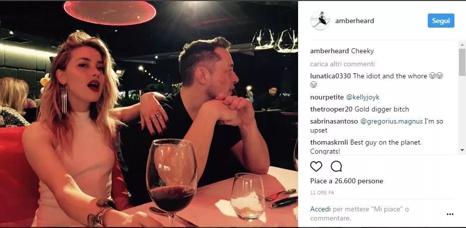 这次离婚的打击对马斯克应该不小,他又是个不能没有爱的人,无法忍受一个人过日子。 很快,八卦记者发现他和德普的“妖姬”前妻Amber Heard交情不浅。