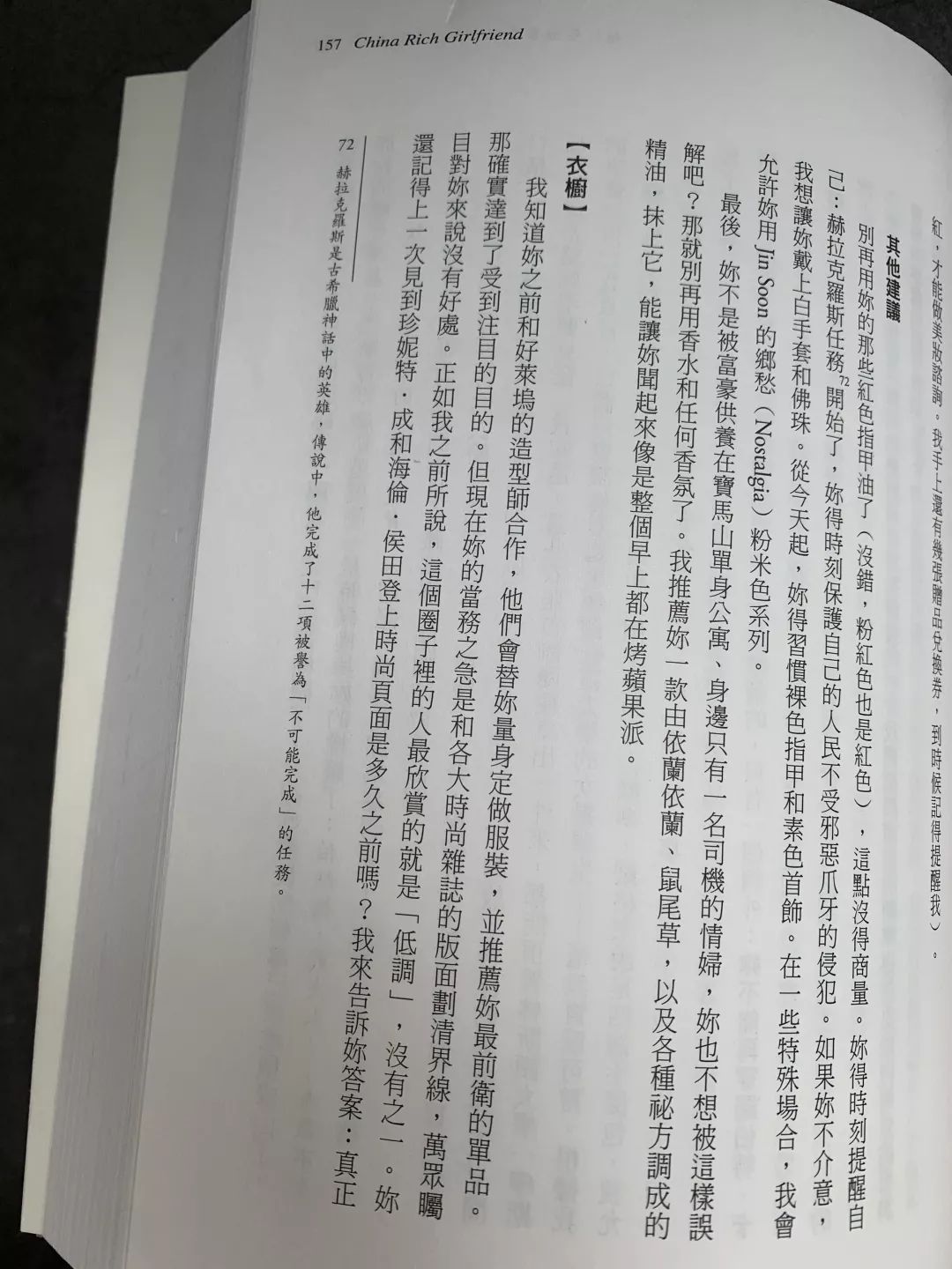 这套书除了猎奇之外,很大程度上,大家都把关凯文的这三本书当成了亚洲上流社会的实用指南,新加坡世家出身,所以关凯文对于亚洲富豪圈子吃什么用什么玩什么一门清。