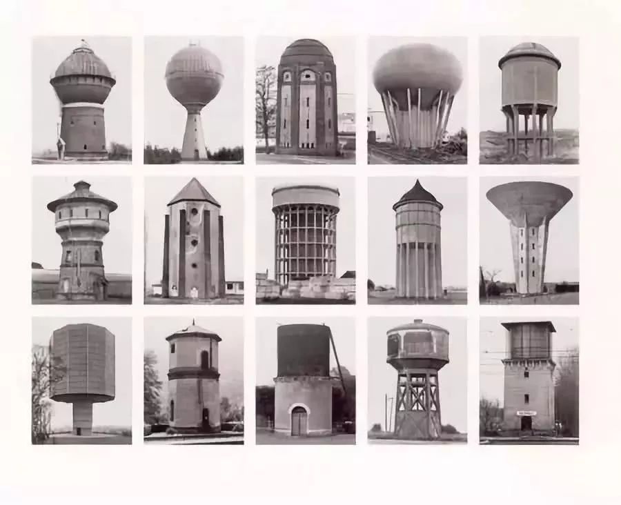 bernd and Hilla becher歇尔夫妇的水塔照片。