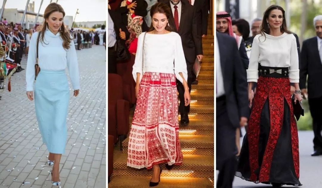 ▲拉尼娅王妃的招牌衣着是将白色或浅色衬衫、雪纺衫扎进长窄裙里,冬天就换上高领毛衣。裙子则依据场合,决定是要素色或是缤纷一点的颜色。这种穿搭既知性又正式,不同裙子设计又能满足变化。