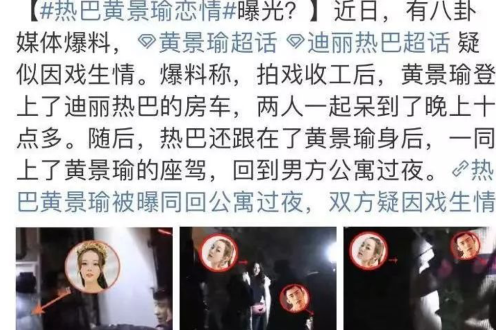 凤凰娱乐报道曝光了迪丽热巴与黄景瑜因戏生情,平安夜同居被拍的新闻。