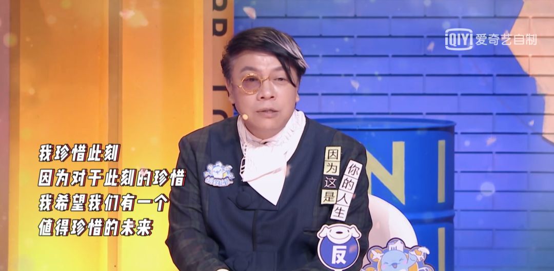 但其实,这句话的本意还有后半句,他在《奇葩说》上说完整了——开心点朋友们,人间不值得,不值得大家这么不开心。