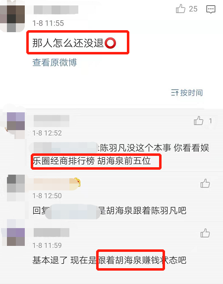 不少网友对陈羽凡的出现颇为不满,并质疑:“他怎么还没退圈?”不过也有人表示陈羽凡这是在跟着胡海泉经商,毕竟胡海泉是娱乐圈中有名的“商业人士”。