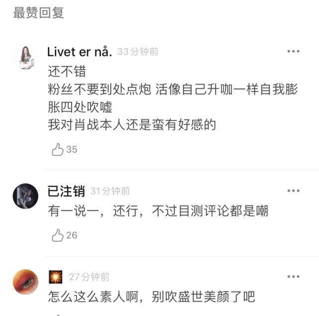 流量艺人不好做,流量艺人的粉丝也需要谨言慎行。毕竟,肖战现在确实挺火的,但他不仅仅需要粉丝的支持,还需要大众的认可与肯定,不被大家反感,用作品和实力来证明自己,这才是维持热度的最好方法。关于颜值,高不高的,大家都可以看得到,也不用尽力去维护。