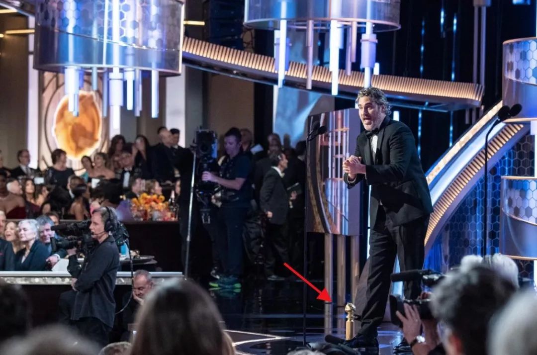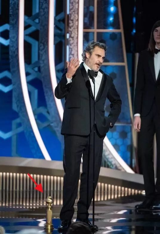 拿了奖之后,凤凰叔转脸把无数演员大腕儿们梦寐以求的金球奖杯放在了地上:
