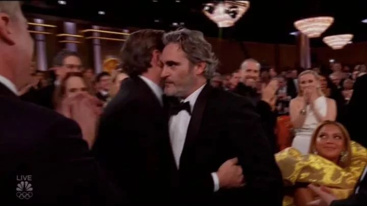 得知他获奖后,小李子莱昂纳多开心的和凤凰叔贴面,凤凰叔简直是面色铁青: