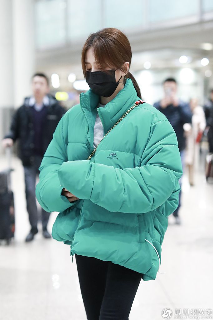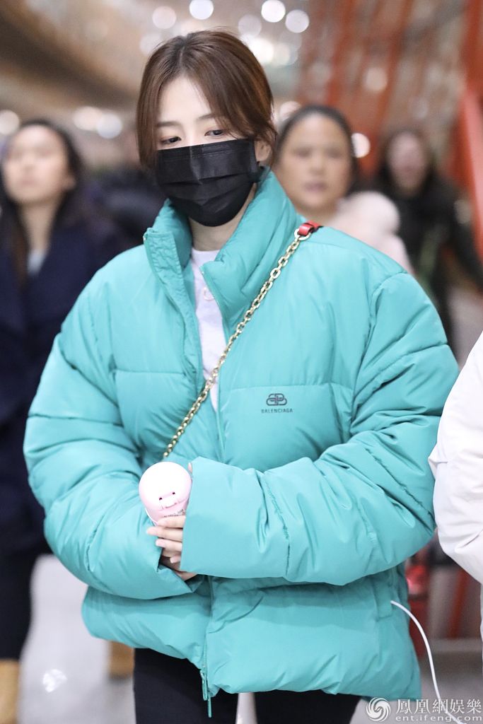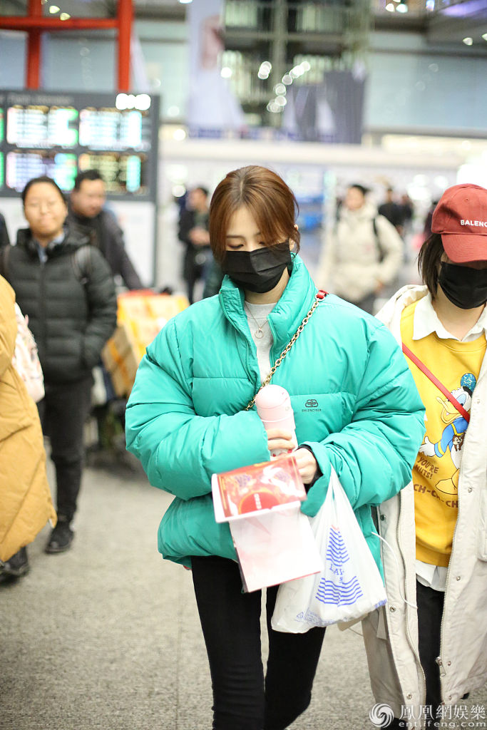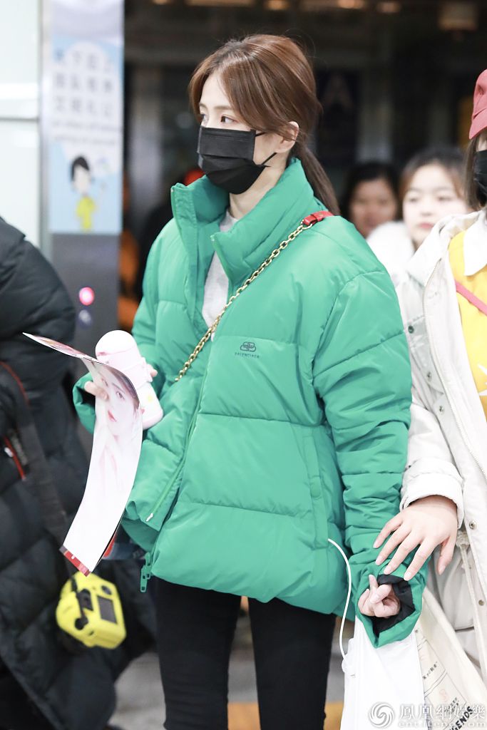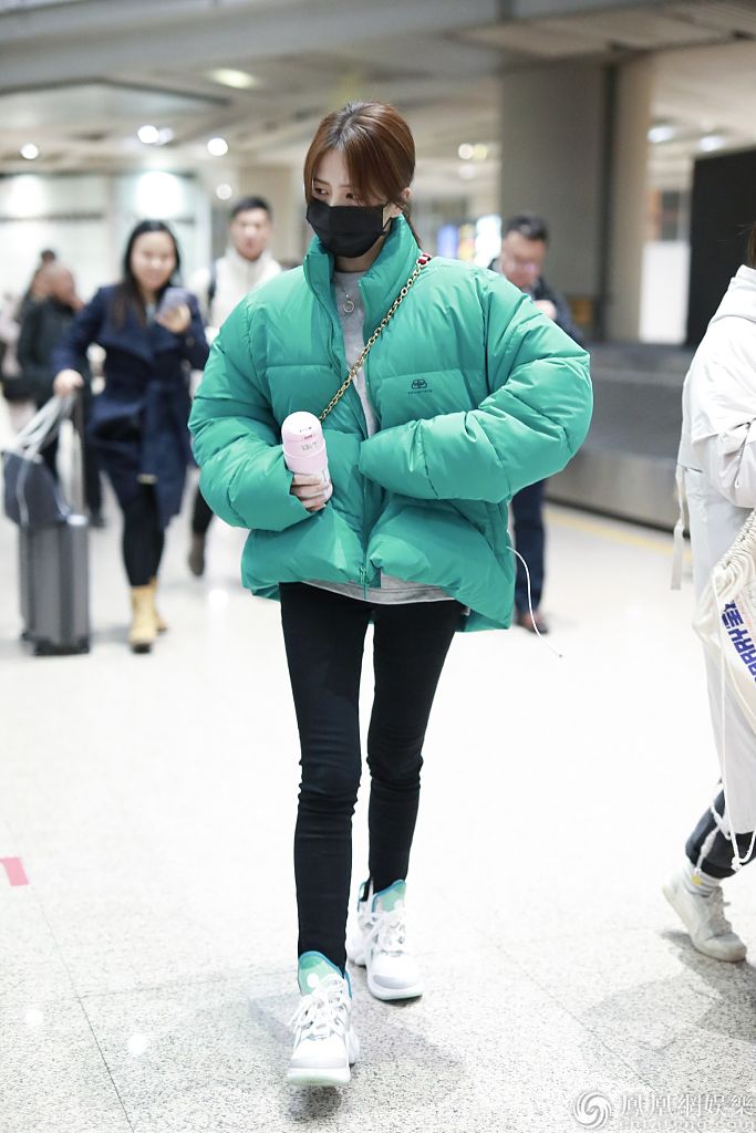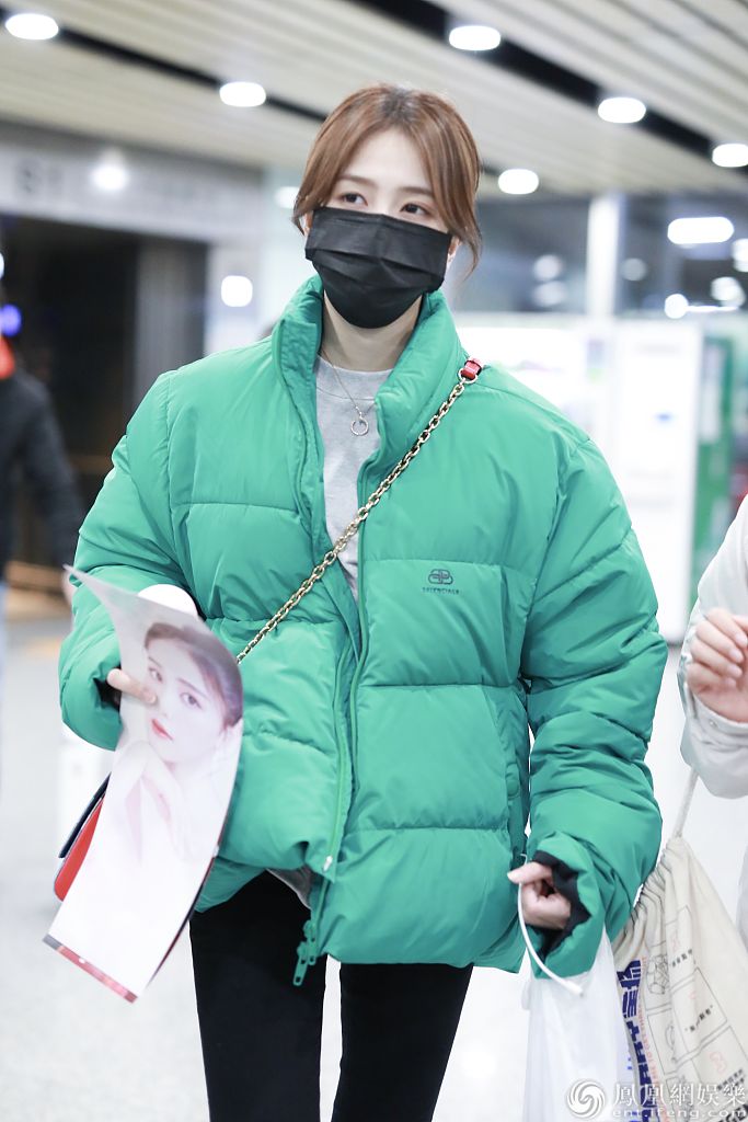 她身材纤瘦穿面包服不显臃肿,深夜赶路睡眼惺忪显疲惫,获粉丝送应援画报实力打call。