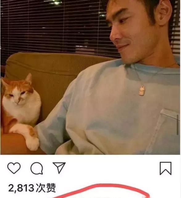 去年10月份,他在微博上发了一只猫,和一颗爱心。在ins上配图是同一张,但文案变成了“你是我的爱”。