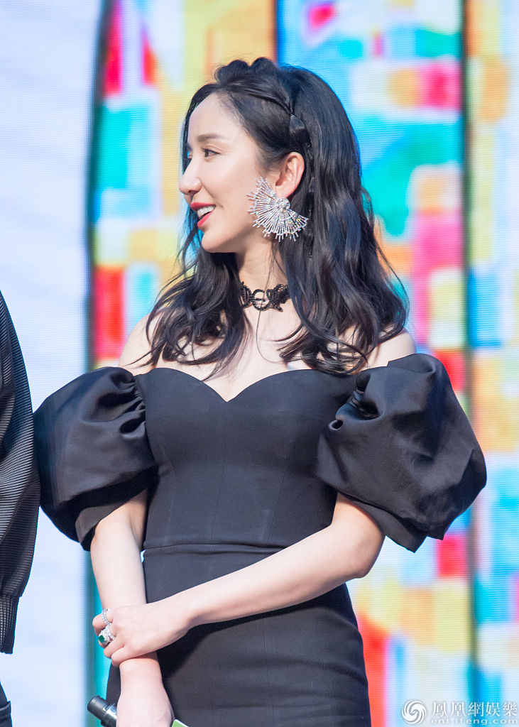 娄艺潇穿黑色短裙秀美腿香肩性感满分。