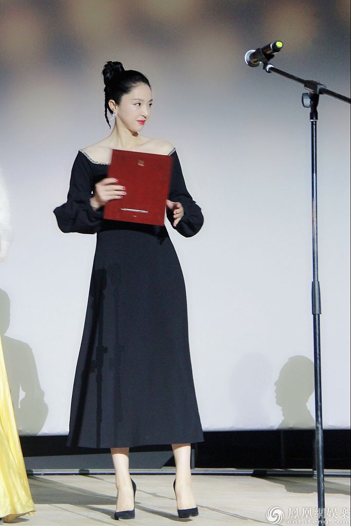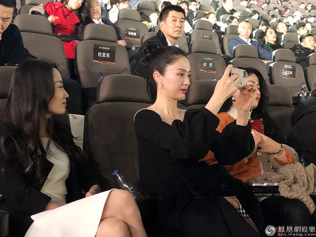 2020年1月7日,北京,董璇、巩汉林、王志飞、郑昊、黄宏等明星出席第九届光年杯北京国际网络电影展颁奖典礼。董璇一袭黑色钻石长裙亮相,大秀美肩十分迷人,搭配个性发型又美又潮,坐在台下化身“迷妹”拍照,五官精致上演“侧颜杀