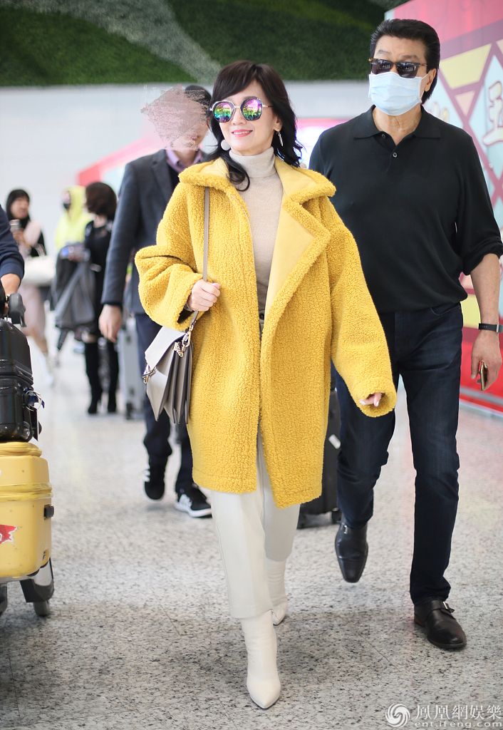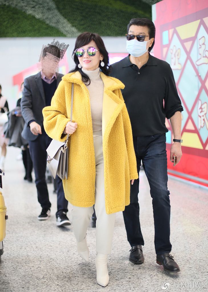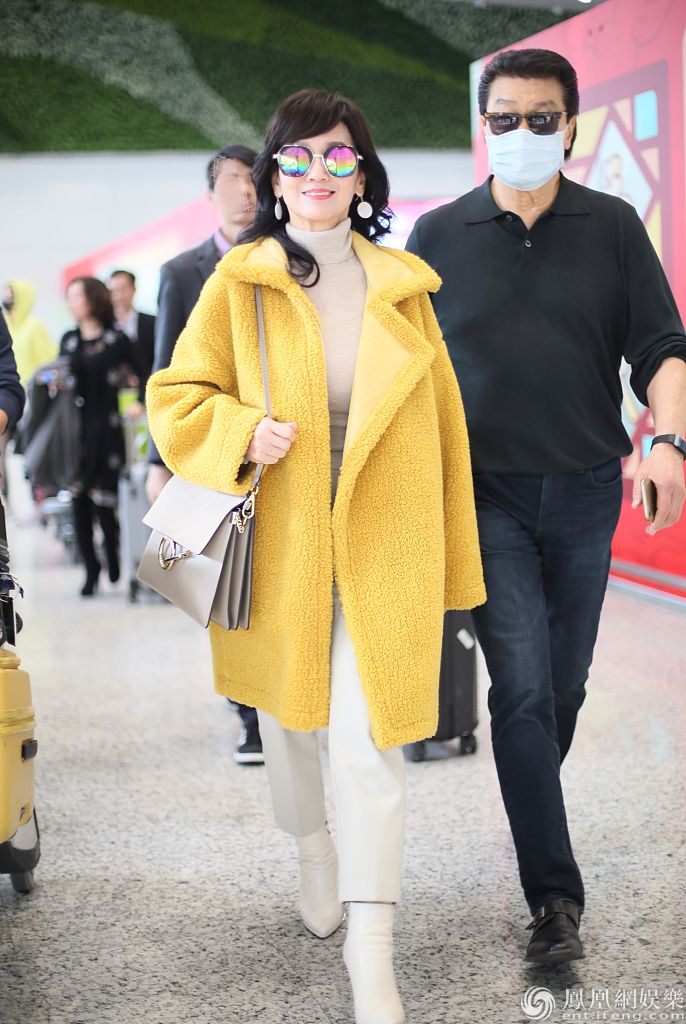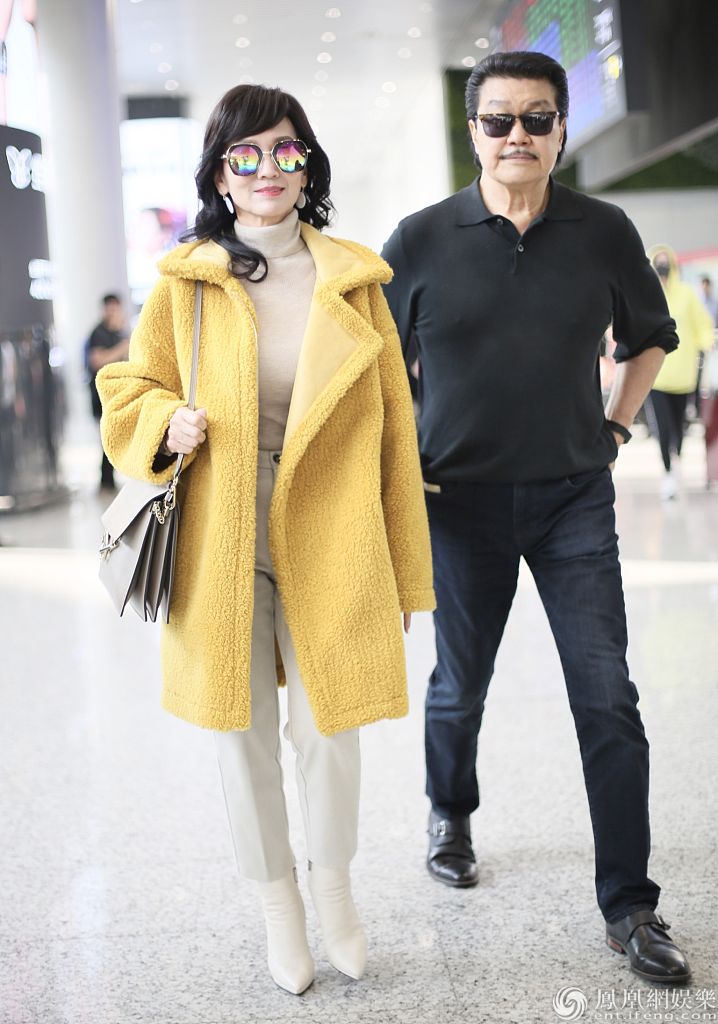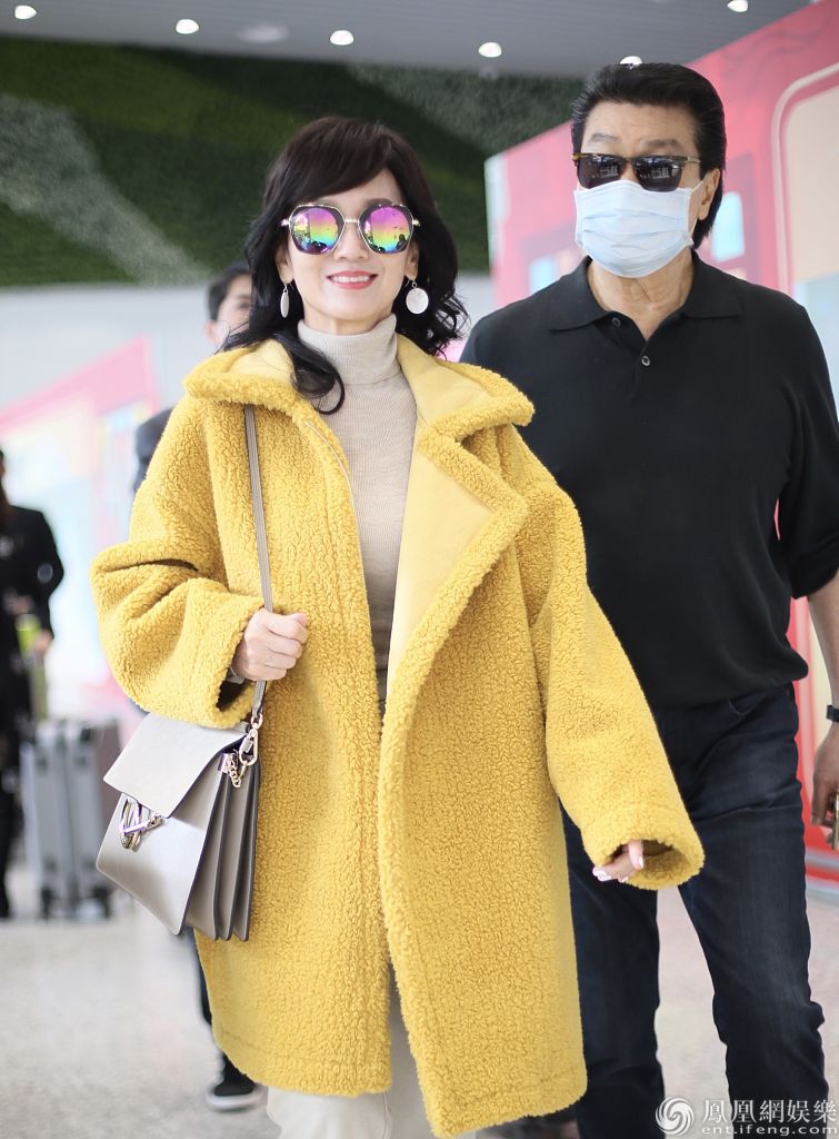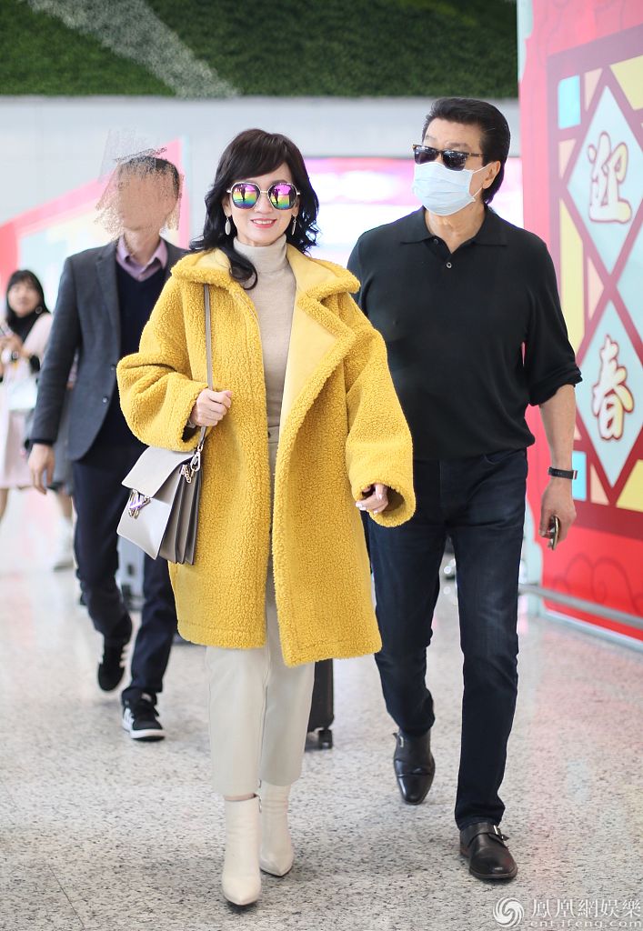 赵雅芝黄锦燊夫妇现身白云机场。