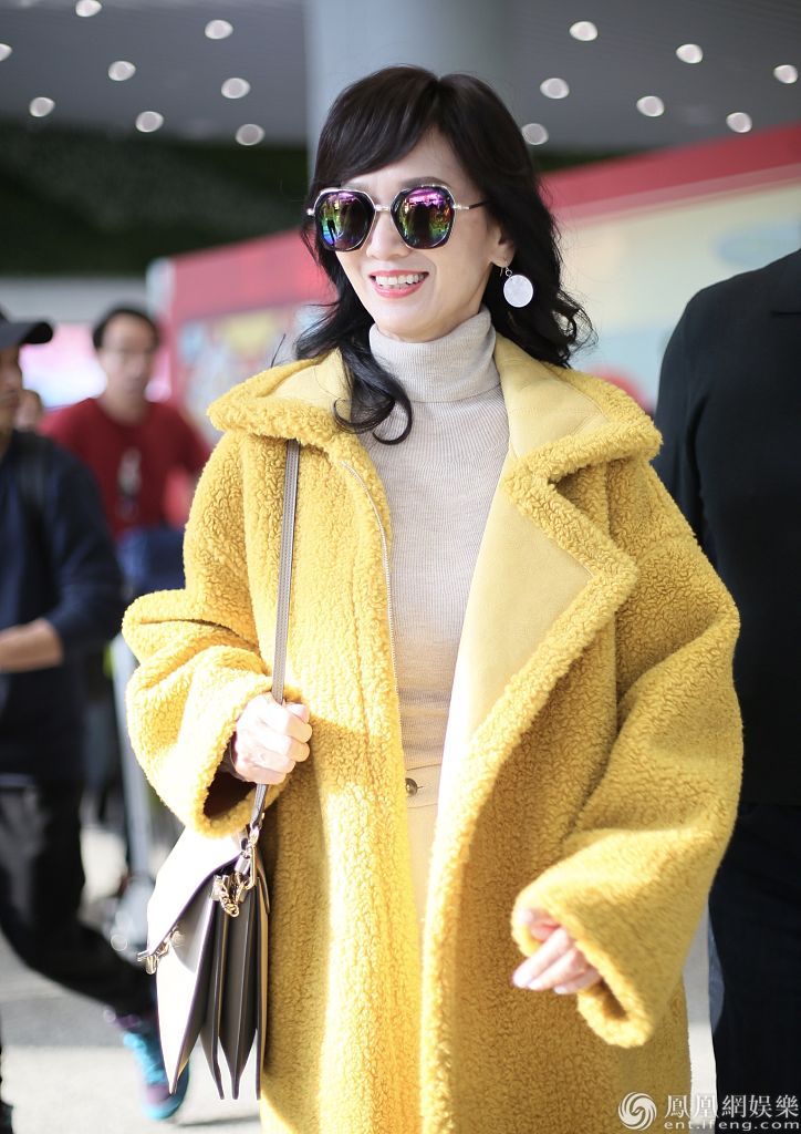 65岁的赵雅芝身着鹅黄大衣,见跟拍一路露暖心笑容,甜美气质不输小姑娘。