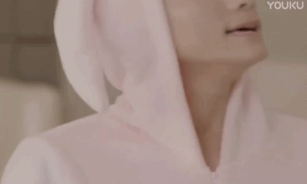 身穿粉色家居服,戴着粉色兔耳朵帽子,嗲嗲地说着话,艾玛,女生看了估计都心动了。