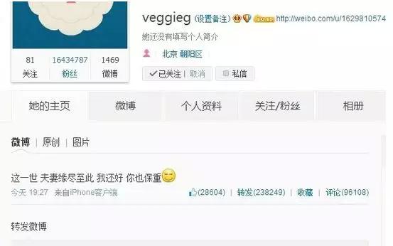忍受不了这样生活的她,选择了离婚,在微博上表达了一别两宽的祝愿。
