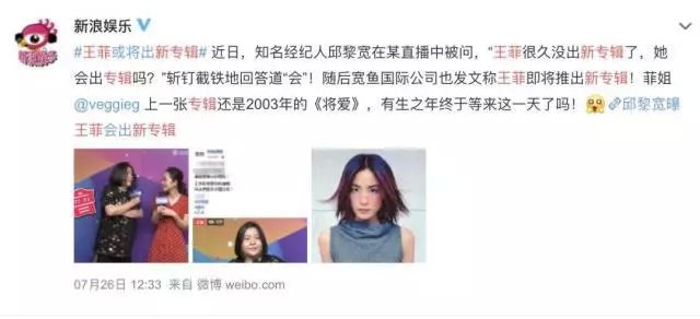 不过休息了这么久,王菲那颗想歌唱的心又再次活跃起来了。她的经纪人邱黎宽在直播中,斩钉截铁地回答说王菲将会出新专辑。