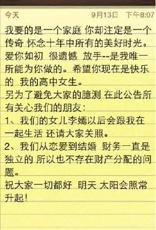 而李亚鹏则在微博上来了个我要的是个家庭,你却注定是一个传奇。一句话,就让大众浮想联翩地认为,王菲不是个贤妻良母。