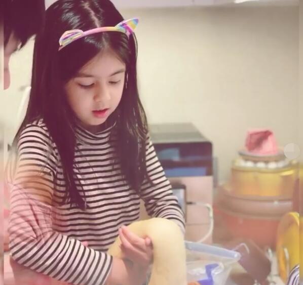 梁咏琪手把手教女儿做面包,索菲亚看得非常入神,去年的索菲亚已经跟着妈妈一起做了,今年的索菲亚要好好学习,毕竟明年的时候妈妈梁咏琪要坐享其成,要女儿独立完成面包的制作。