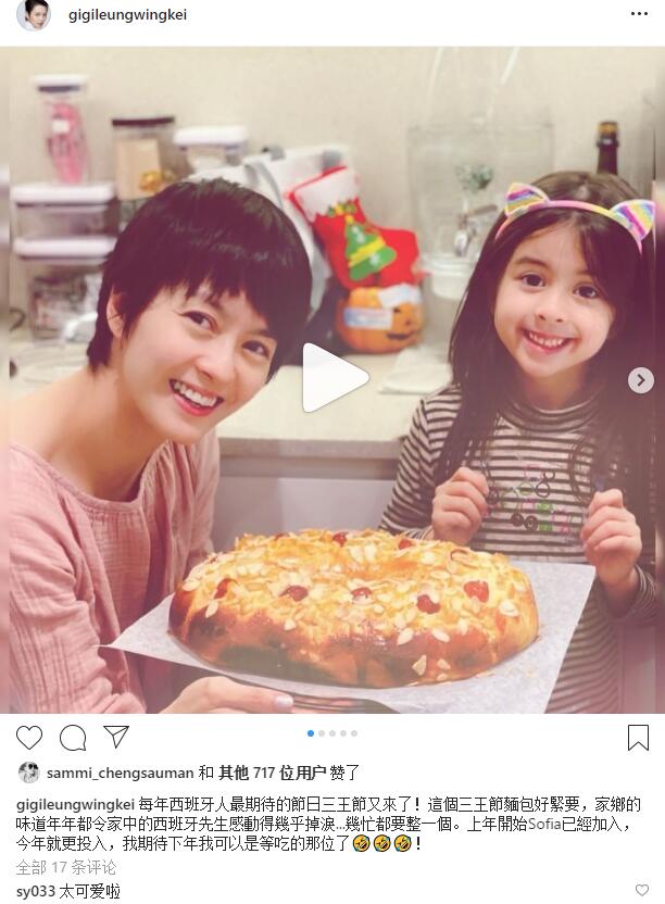 1月6日,梁咏琪在ins晒出了一条动态,配文:“每年西班牙人最期待的节日三王节又来了,这个三王节面包好紧要,家乡的味道年年都令家中的西班牙先生感动得掉泪……上年开始索菲亚已经加入,今年更投入,期待下年我可以是等吃的那位了