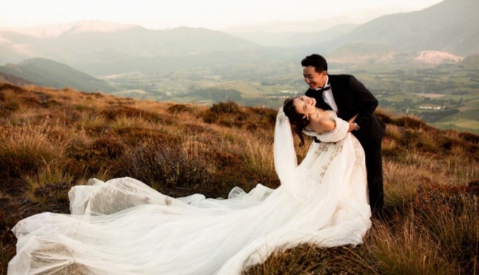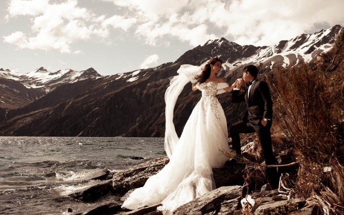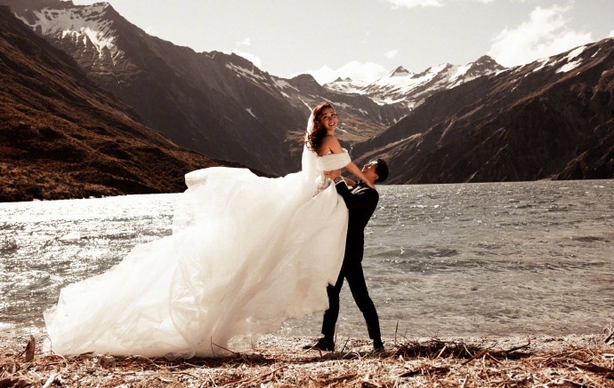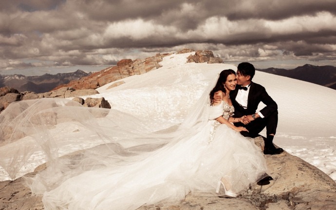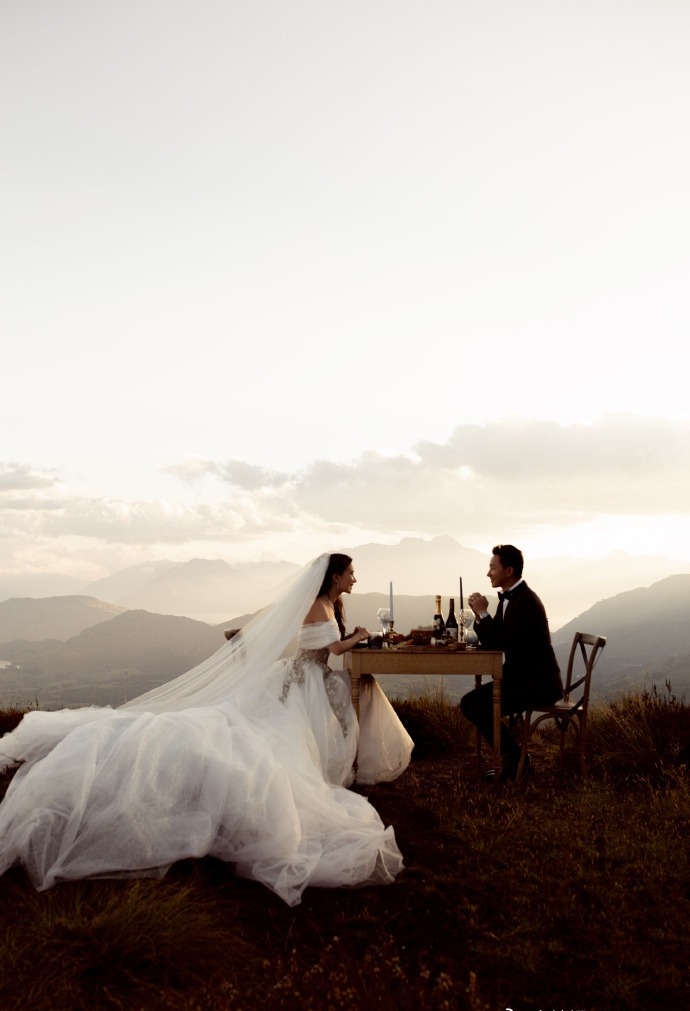 韩庚卢靖姗婚纱大片,画面温馨幸福。