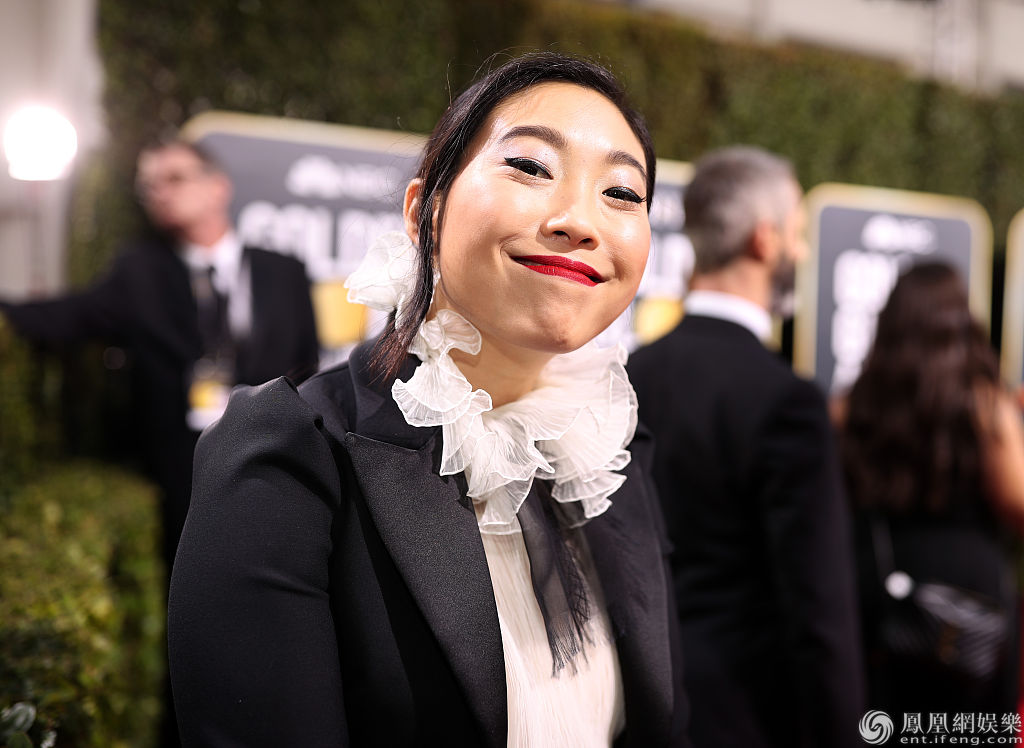 当地时间2020年1月5日,美国加利福尼亚,奥卡菲娜亮相第77届金球奖后台,她凭借在电影《别告诉她》中的出色表演获得了 第77届金球奖音乐/喜剧类最佳女主