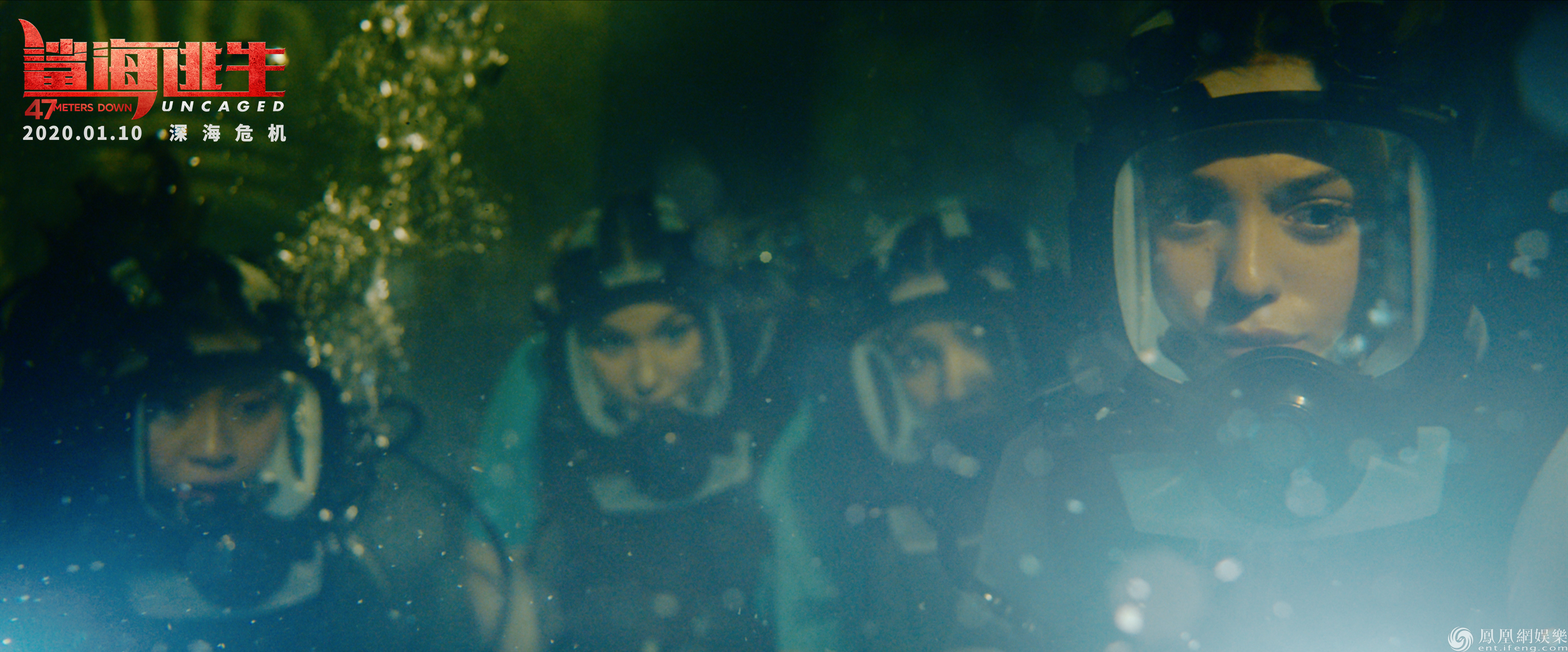 同期发布的终极海报揭晓了唯一的生机所在,少女们奋力逃向古城遗迹仅存的出口,掉落的氧气罐和紧跟其后穷追不舍的鲨群,昭示了她们已再无退路,否则,岩洞中触目惊心的白骨就是她们的下场。这场九死一生的搏命冒险,她们究竟能否最终逃出生天?不妨走进影院揭晓答案。