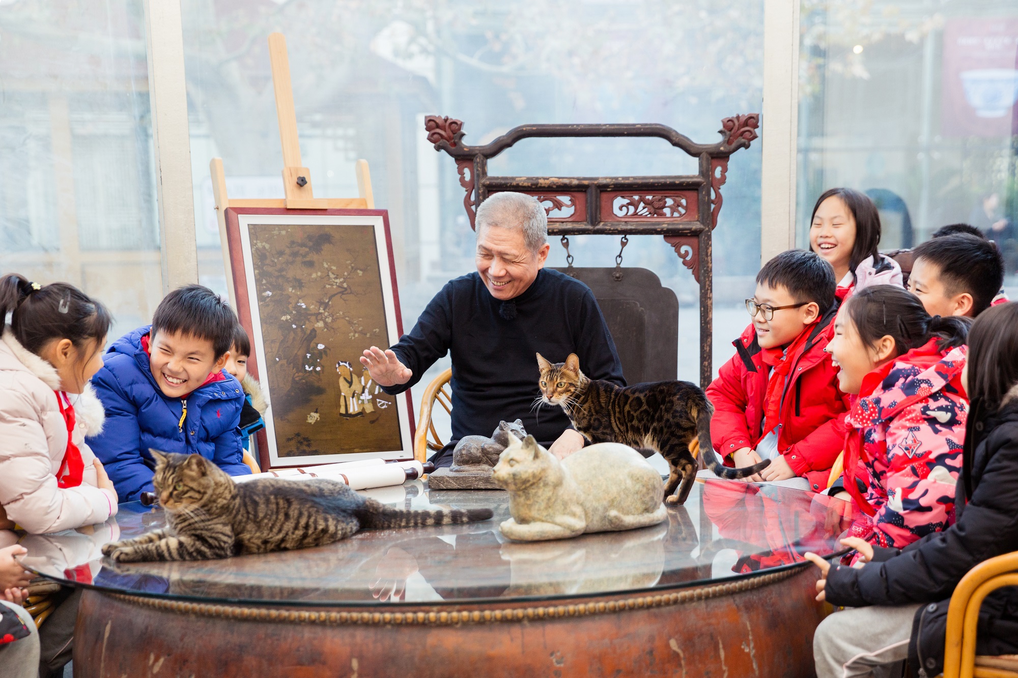 值得一提的是,观复猫不仅有着各自的名字,还在博物馆里担任着不同“职务”。马未都向同学们解释说,这些拟人化的称谓,正是希望向社会表示,我们对猫的平等态度。 亲密接触观复猫后,马未都的课堂由猫转向了带有动物画像的各类文物。在马未都看来,文物承载着文化多样性,记载着中国辉煌灿烂的历史,在文物的鉴赏中才能逐渐培养孩子们的美学眼光。