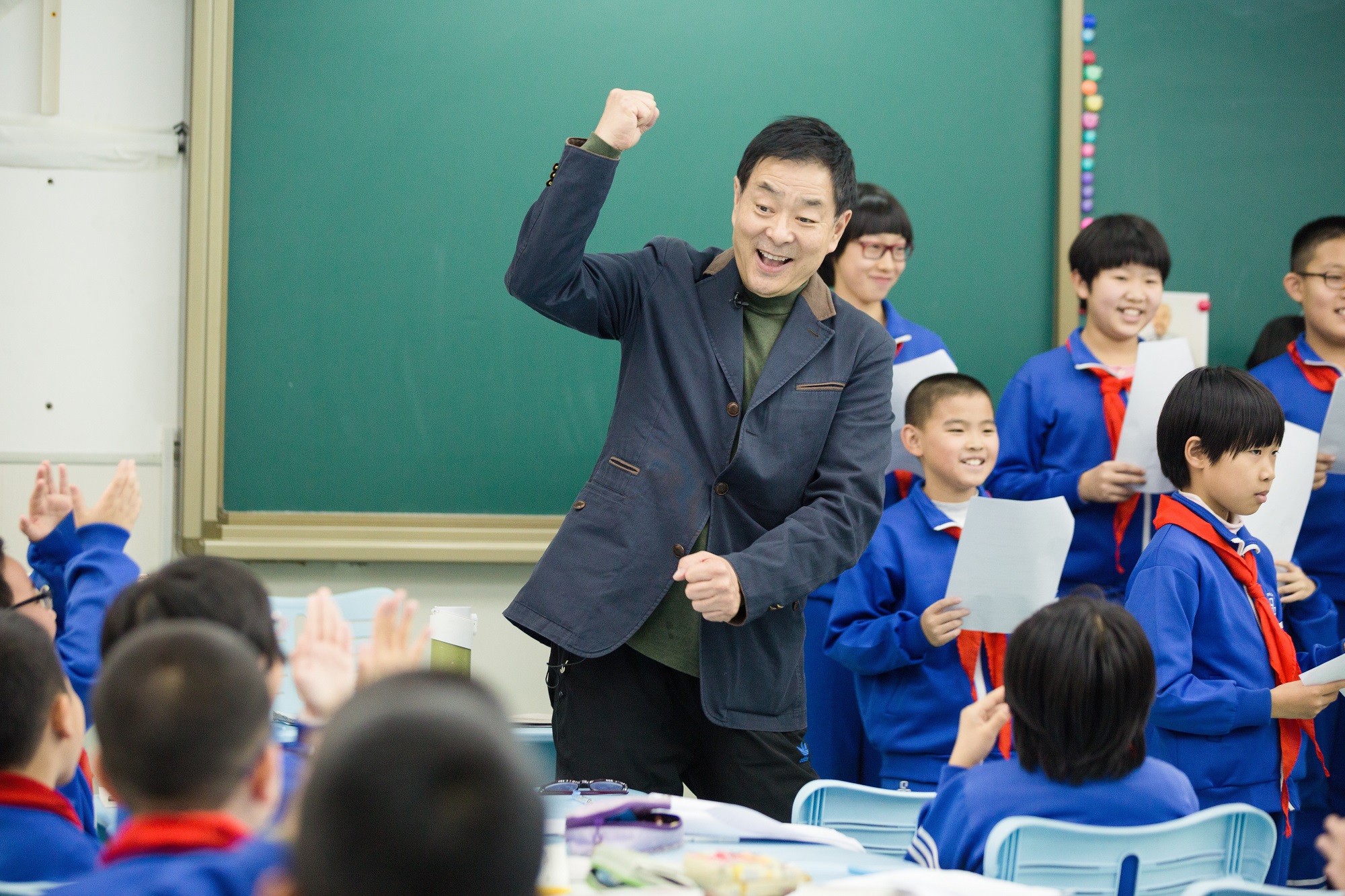 本期节目的下半场,濮存昕带来了与历史有关的一课。除了带领同学们溯源《虎门销烟》的历史,濮存昕还和同学们排演起了小话剧。从“道光皇帝委派林则徐出任钦差大臣”到“林则徐舌战英领事收缴鸦片”,再到“林则徐委托魏源编纂《海国图志》”,同学们认真的表演激发了一方教室浓烈的爱国之情。