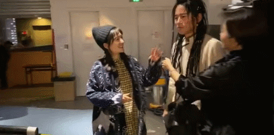 郝蕾和赖导在门口又聊了起来,郝蕾还挽着导演的手臂撒娇,二人虽然第一次合作,但互动很是亲密啊!
