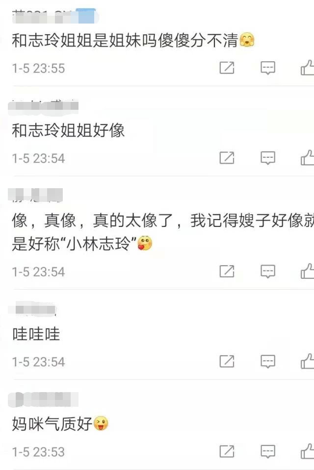 甚至有网友留言说“仿佛看到了两个林志玲”“就像双胞胎一样”。