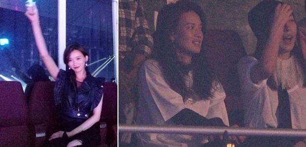 林志玲知道舒淇到场,就从包厢出来去找对方叙旧,志玲姐姐除了欣赏演唱会,还不忘与圈中朋友打招呼。