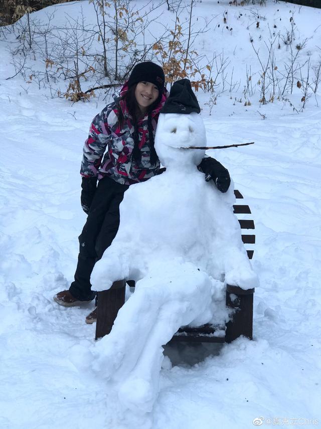 难怪爸爸夏克立表示女儿是小艺术家了,甚至不忘和自己的雪人艺术作品一起同框合影留念,心情大好的夏天也是对着镜头甜笑!