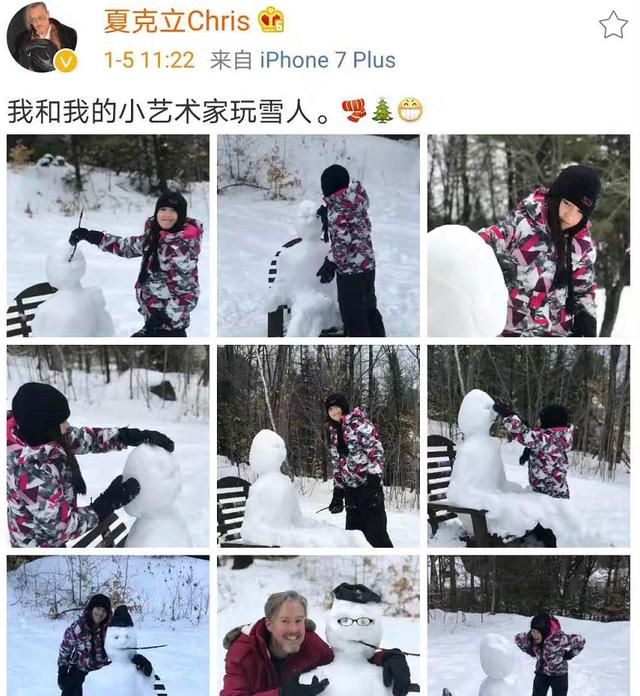 1月5日,夏克立在设计网站上晒出了女儿夏天玩雪的最新近照,并配文表示:“我和我的小艺术家玩雪人。”父女俩一起堆雪人玩得不亦乐