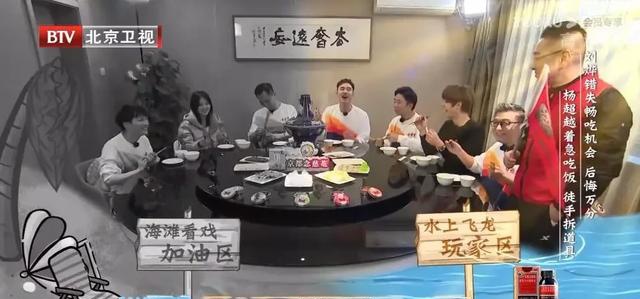节目组对这群不走寻常路的人,也是real放养。举个栗子,吃饭时没参与上一环节的几位喜提筷子被绑住的小惩罚↓