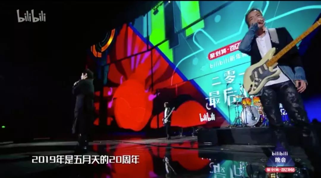 最后,整场晚会的压轴,严格意义上来说并不是年轻人了,而是真正的中年人,他们就是已经出道整整20年的五月天。