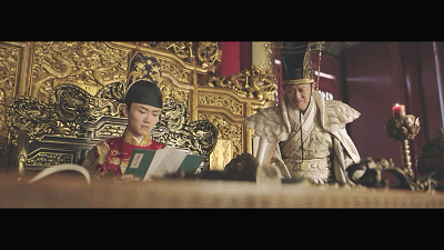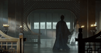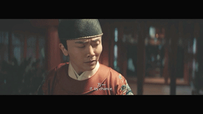 镜头仰拍他被宽袍大袖遮掩的脸,一个野心勃勃却被迫向公公下跪的皇子,内心的隐忍和恨,在这一刻,决堤。