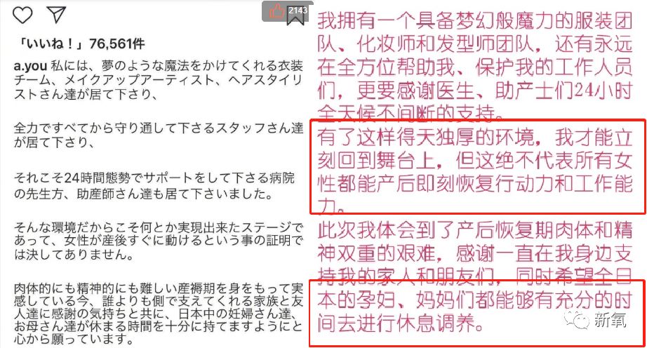 而且,对于自己为何在生产完1个月后就能重返高强度的舞台,她也在ins上表示——这是因为她有得天独厚的医疗条件支持。