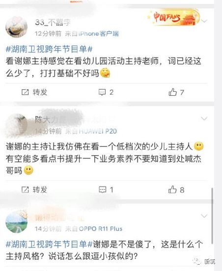 晚会当天的实时微博中也有网友说,谢娜更像是少儿活动的主持人,需要提高业务能力。