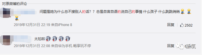 话题热搜下的相关微博有网友表示,“问题是她为什么总不接别人的话??总是自言自语的说自己的事情,什么孩子,什么跳跳俏俏”