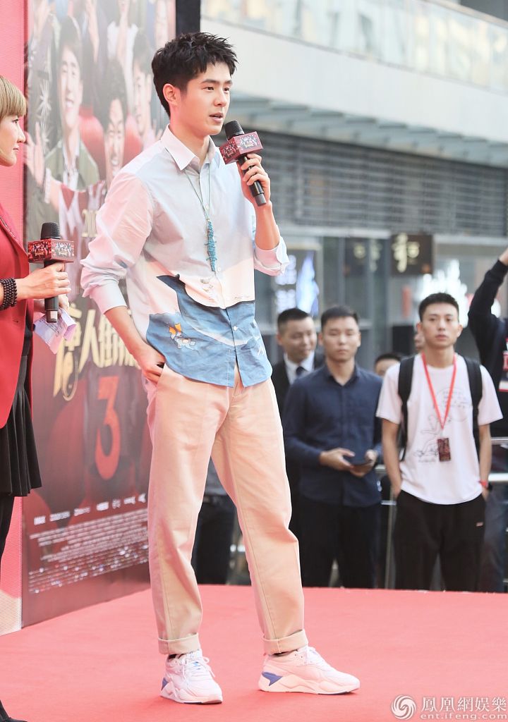 2020年1月3日,广东深圳,刘昊然参加《唐人街探案3》宣传活动。现场被围得水泄不通,身着衬衫的他帅气十足,分享了不少拍片趣事,更不时手舞足蹈,相当可