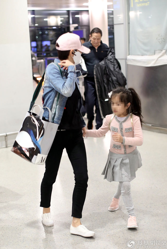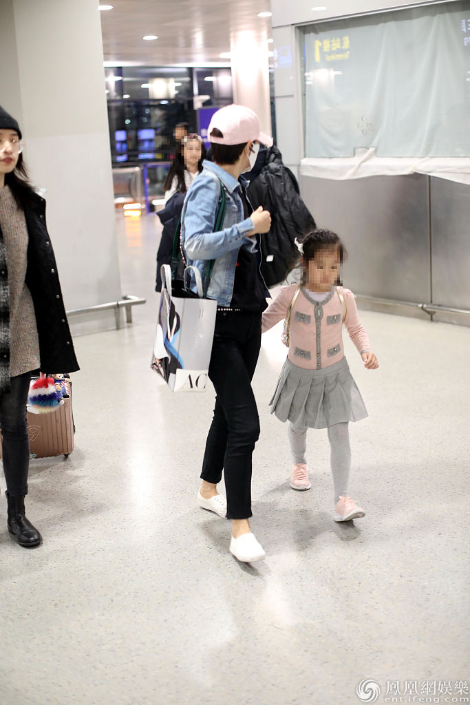 2020年1月3日,上海,马伊琍带家人旅游归来现身机