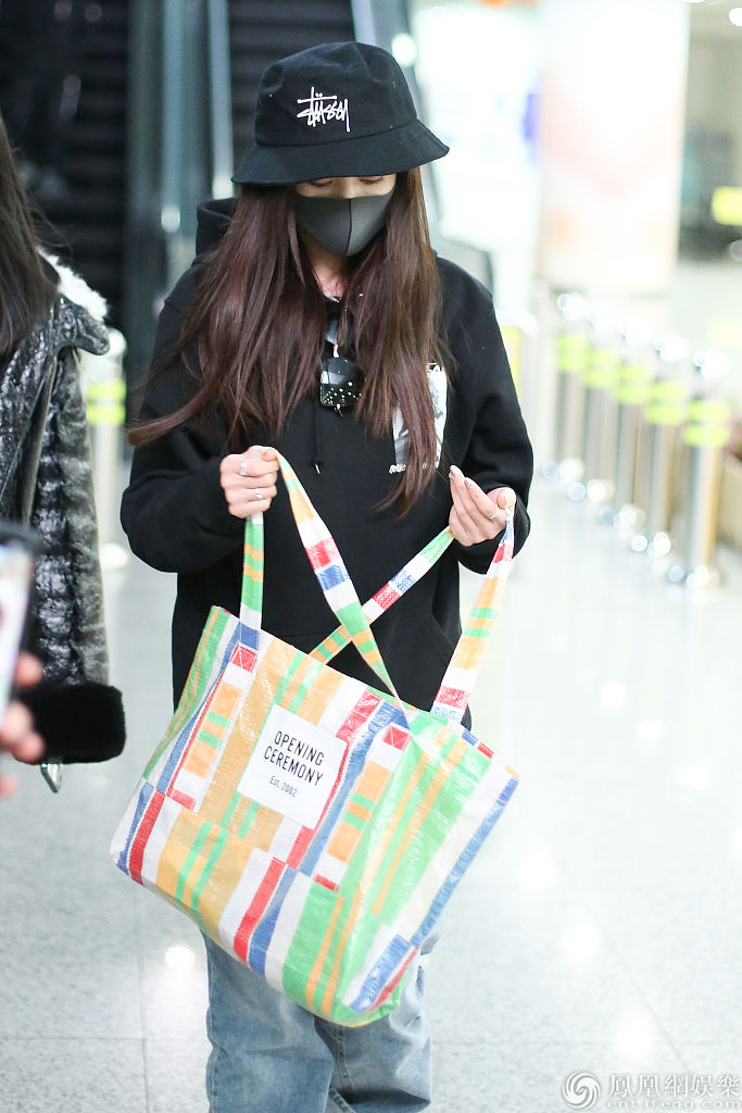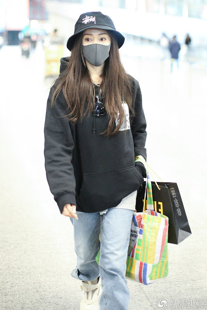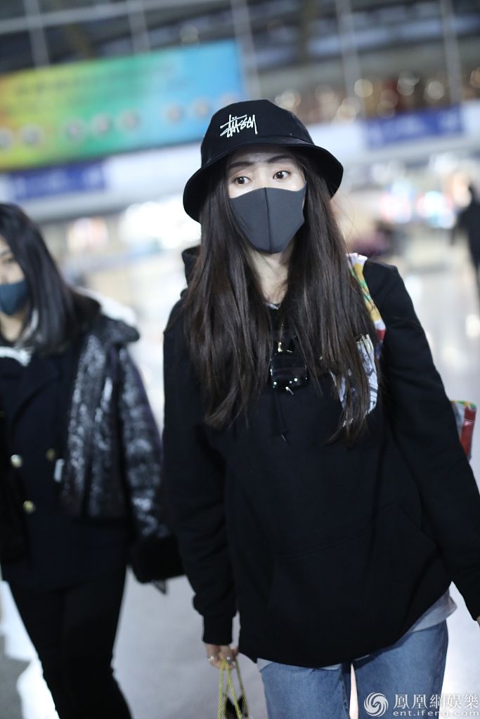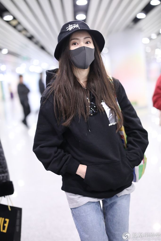 2020年1月2日,北京,张天爱现身机场。她戴帽子口罩包裹严实,美颜难挡依旧靓丽,穿卫衣配仔裤又酷又美,拎包快走美飒范十