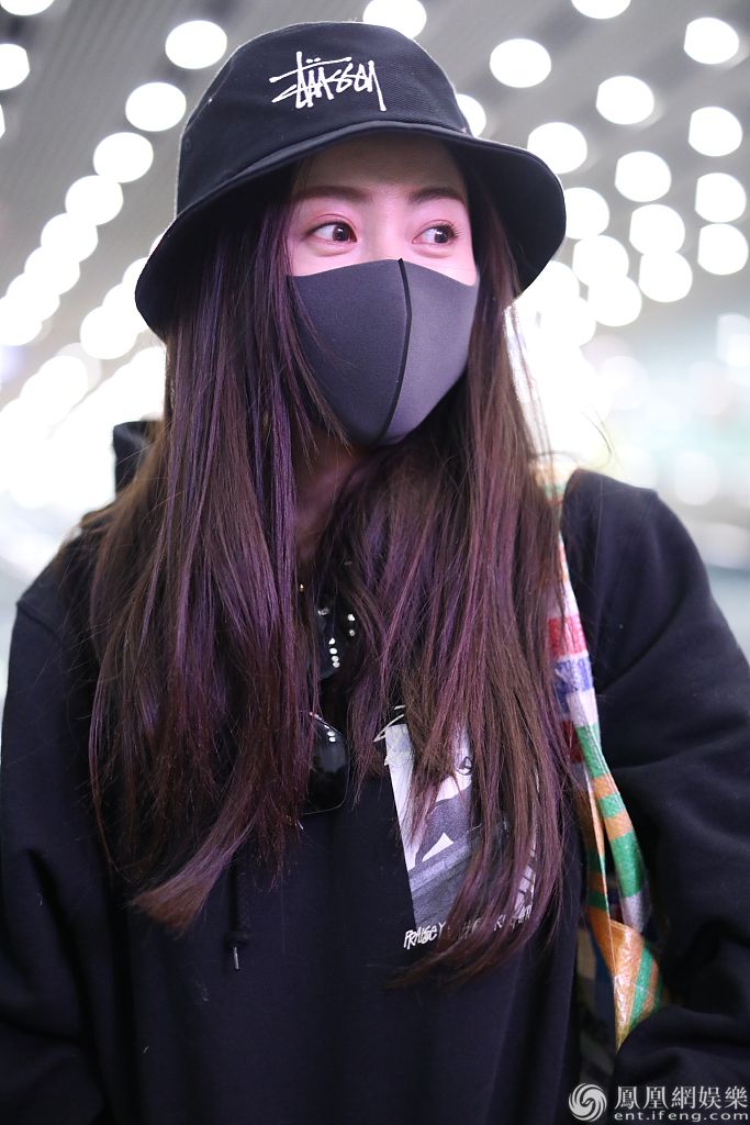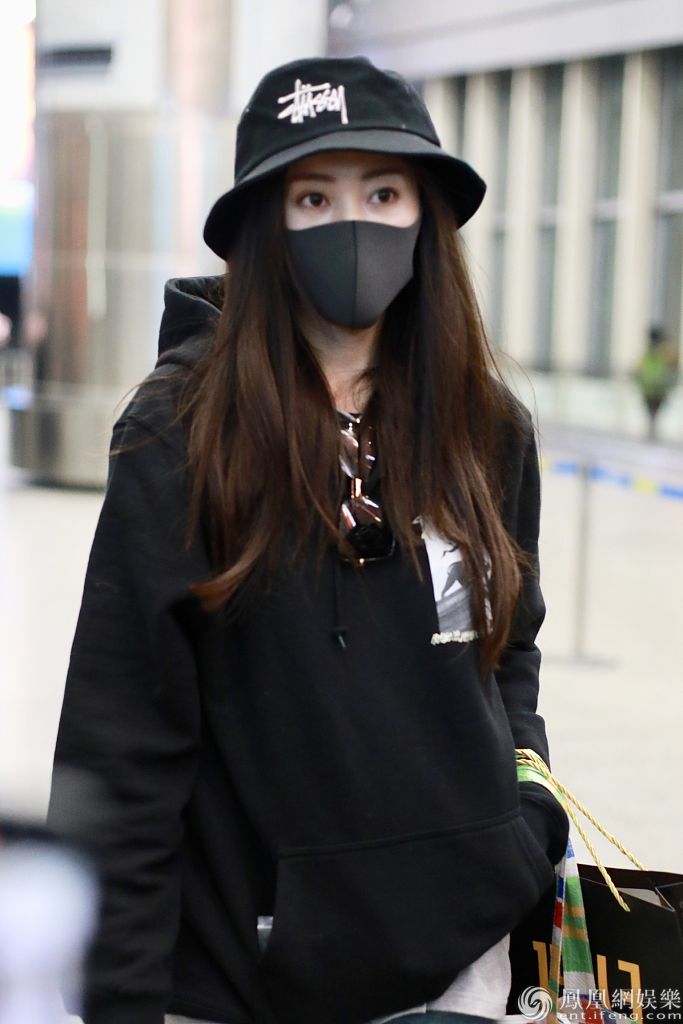 张天爱口罩帽子遮面。