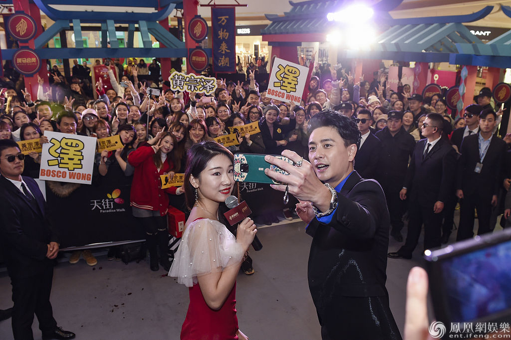 现场气氛热烈,黄宗泽和粉丝们合影自拍。