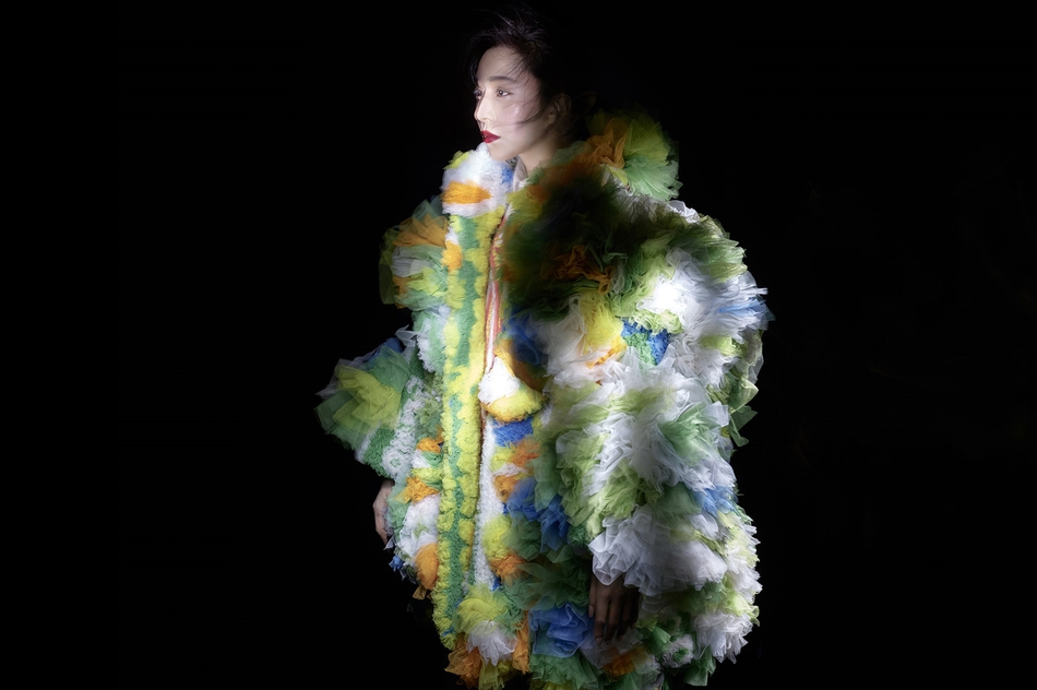 照片中,简单光影,炫彩服饰,演绎出高级时尚感。