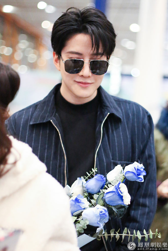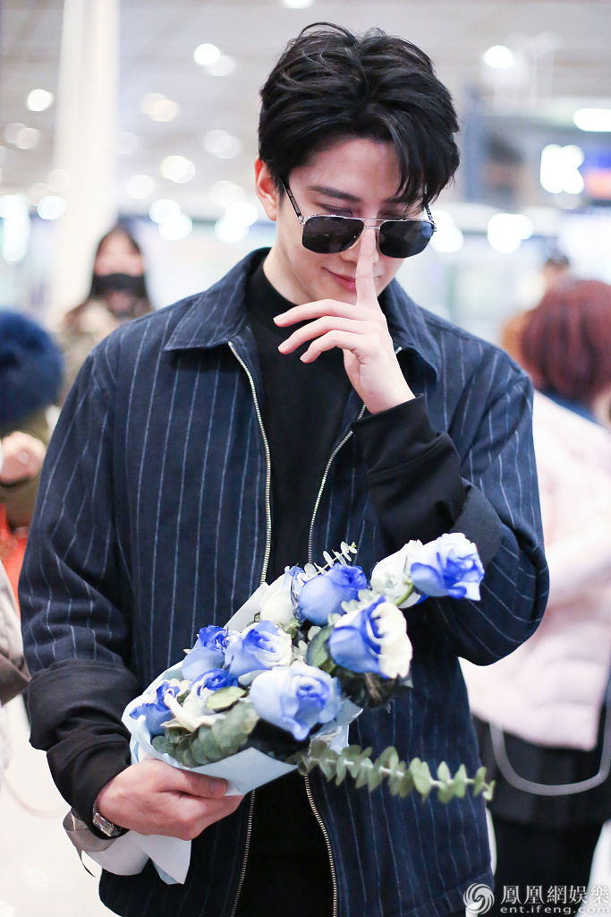 2020年1月2日,北京,泰国男星披拉·尼迪裴善官(Mike)现身机场。他穿条纹夹克清爽简约,架黑超凹造型帅翻天,获粉丝送花吐舌卖