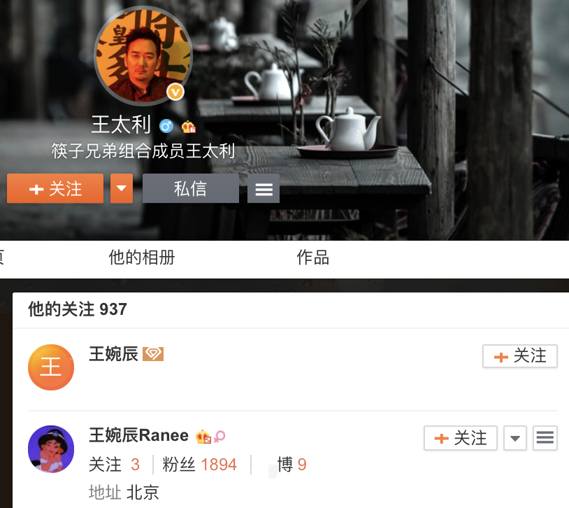翻看王太利的关注,最近两个就是女儿的个人账号,以及她的“超话”。
