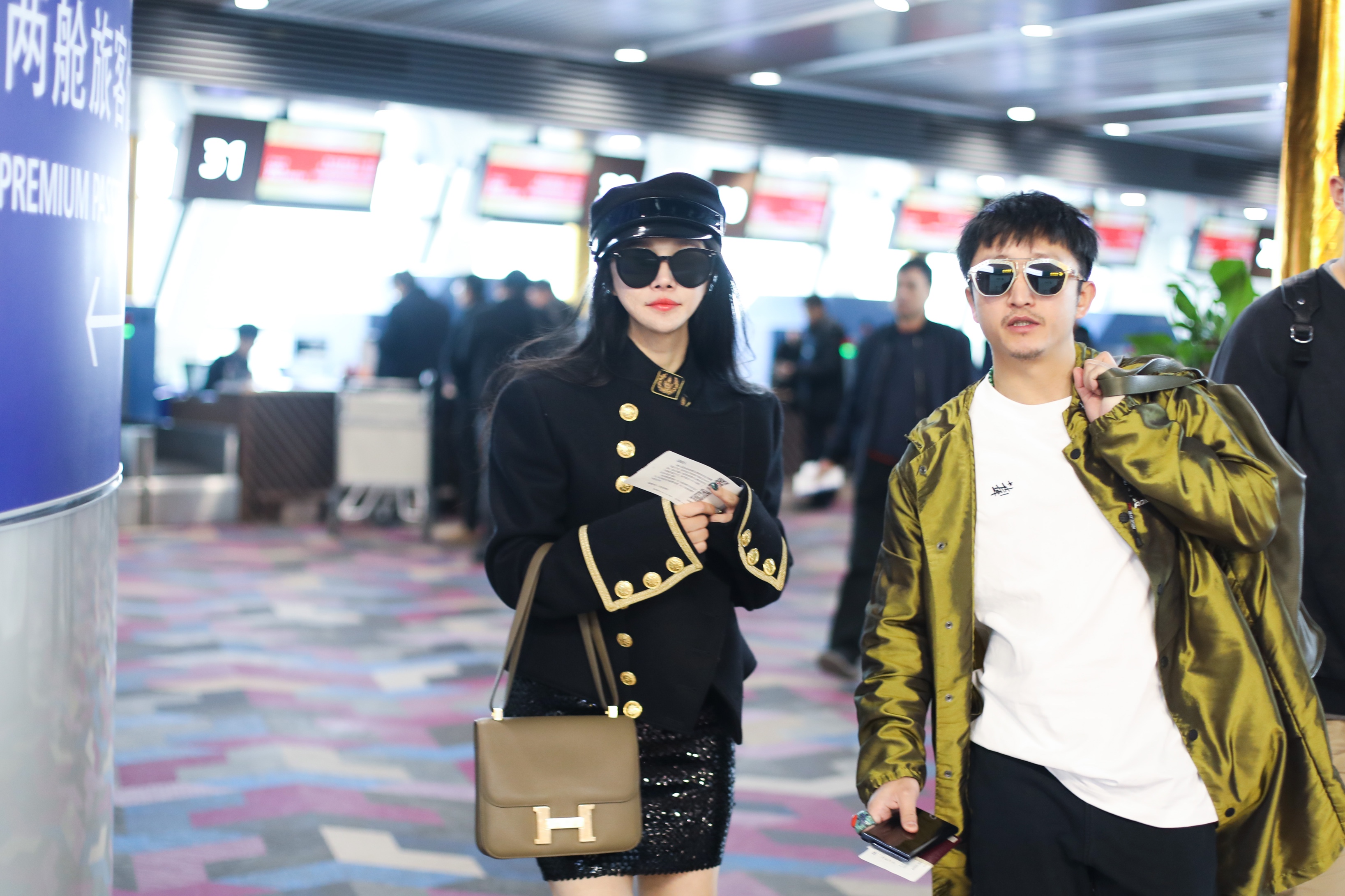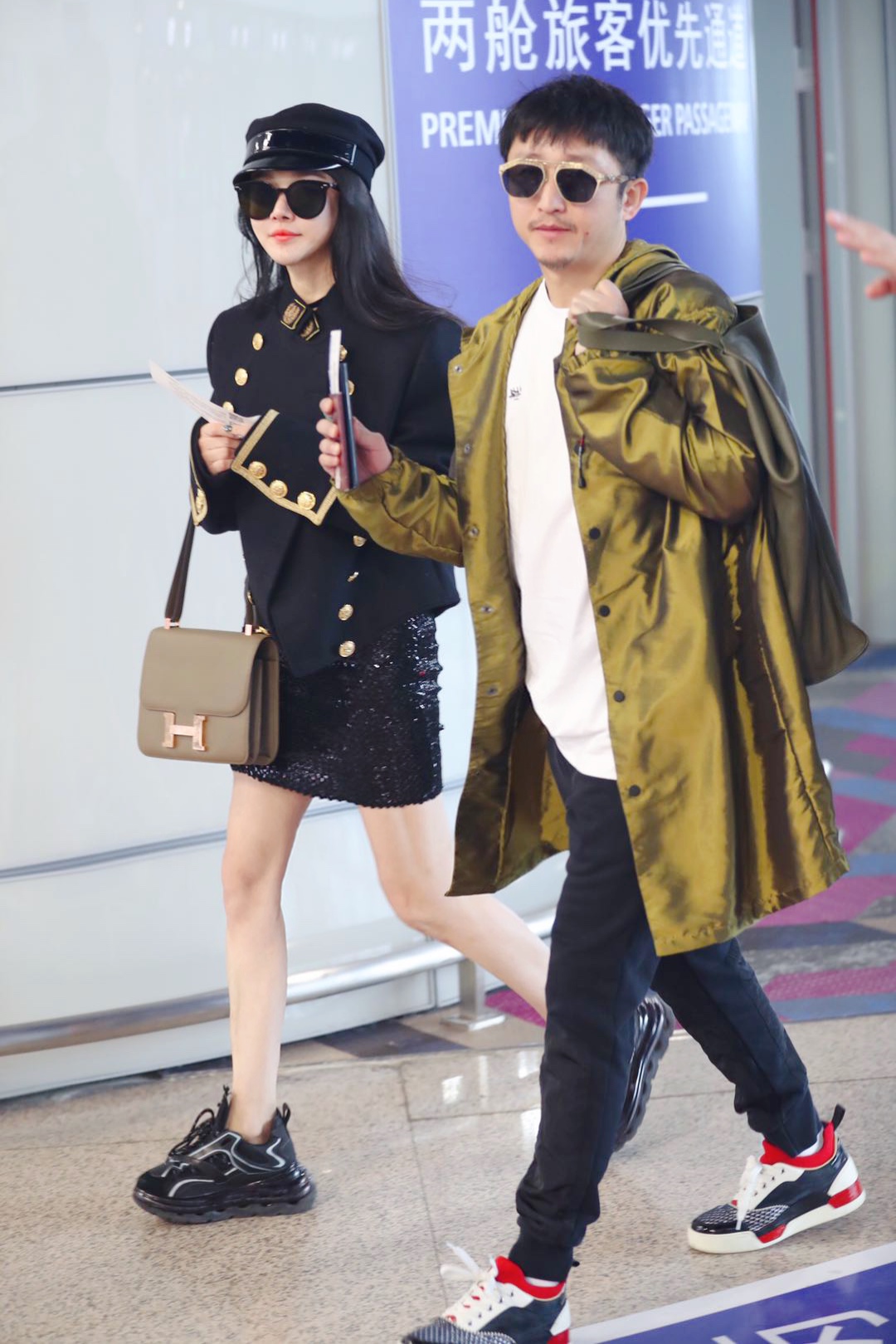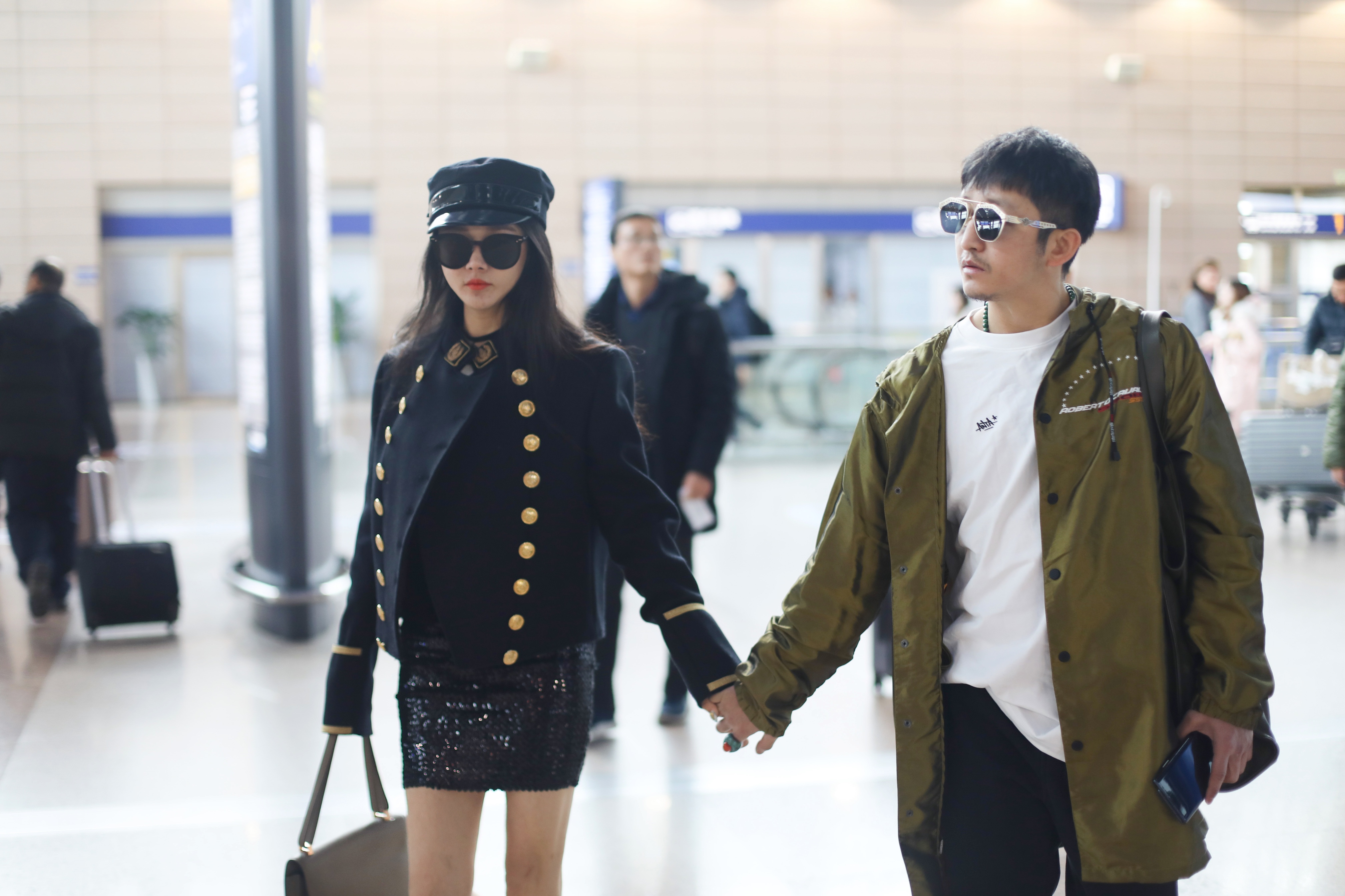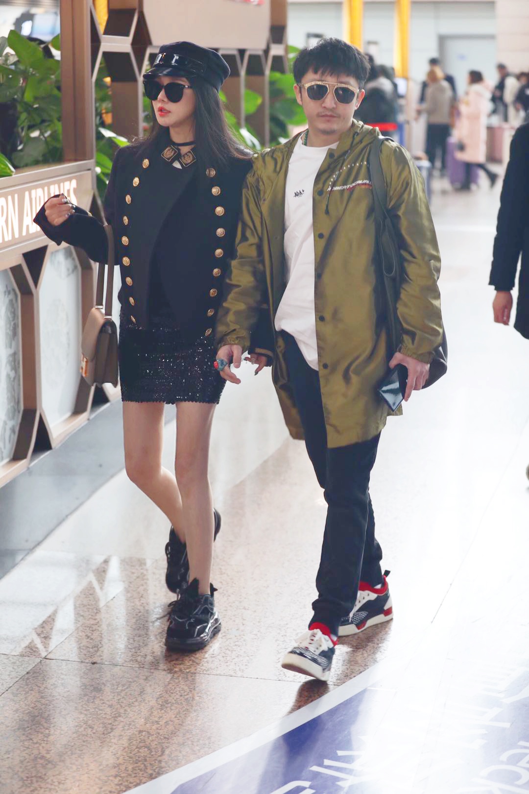 2020年1月2日,上海,邹市明、冉莹颖现身机场。冉莹颖戴贝雷帽星范十足,不惧寒冷穿短裙露美腿,与老公邹市明手牵手羡煞旁
