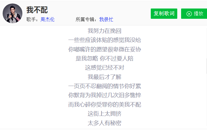周杰伦和侯佩岑分手后,特地写了一首纪念两人爱情的歌——《我不配》。